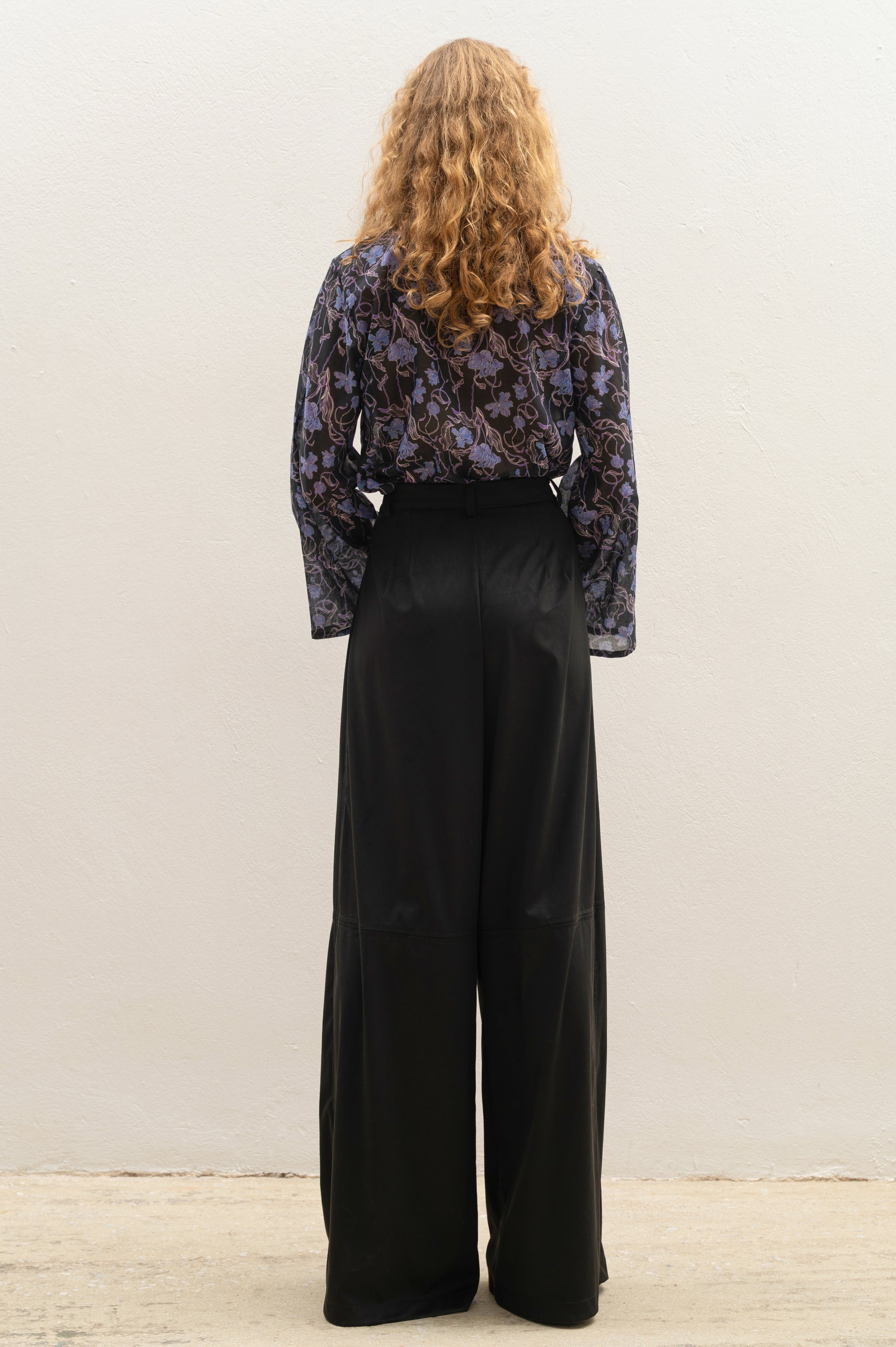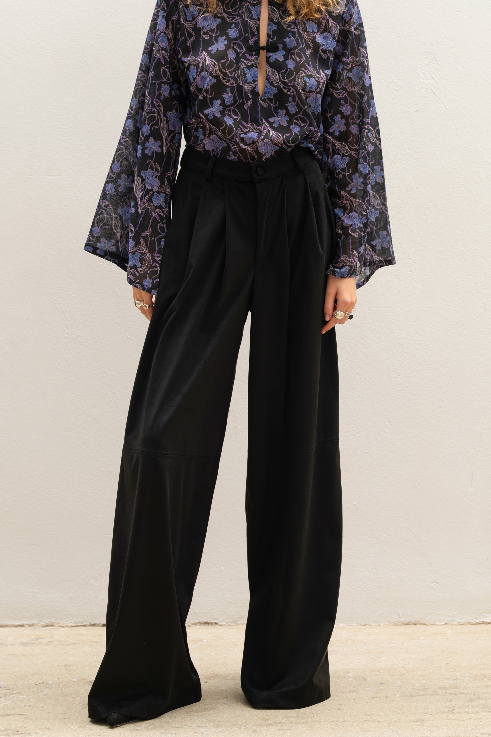 Black Wide-Leg suede pants with Midline Seam Detail